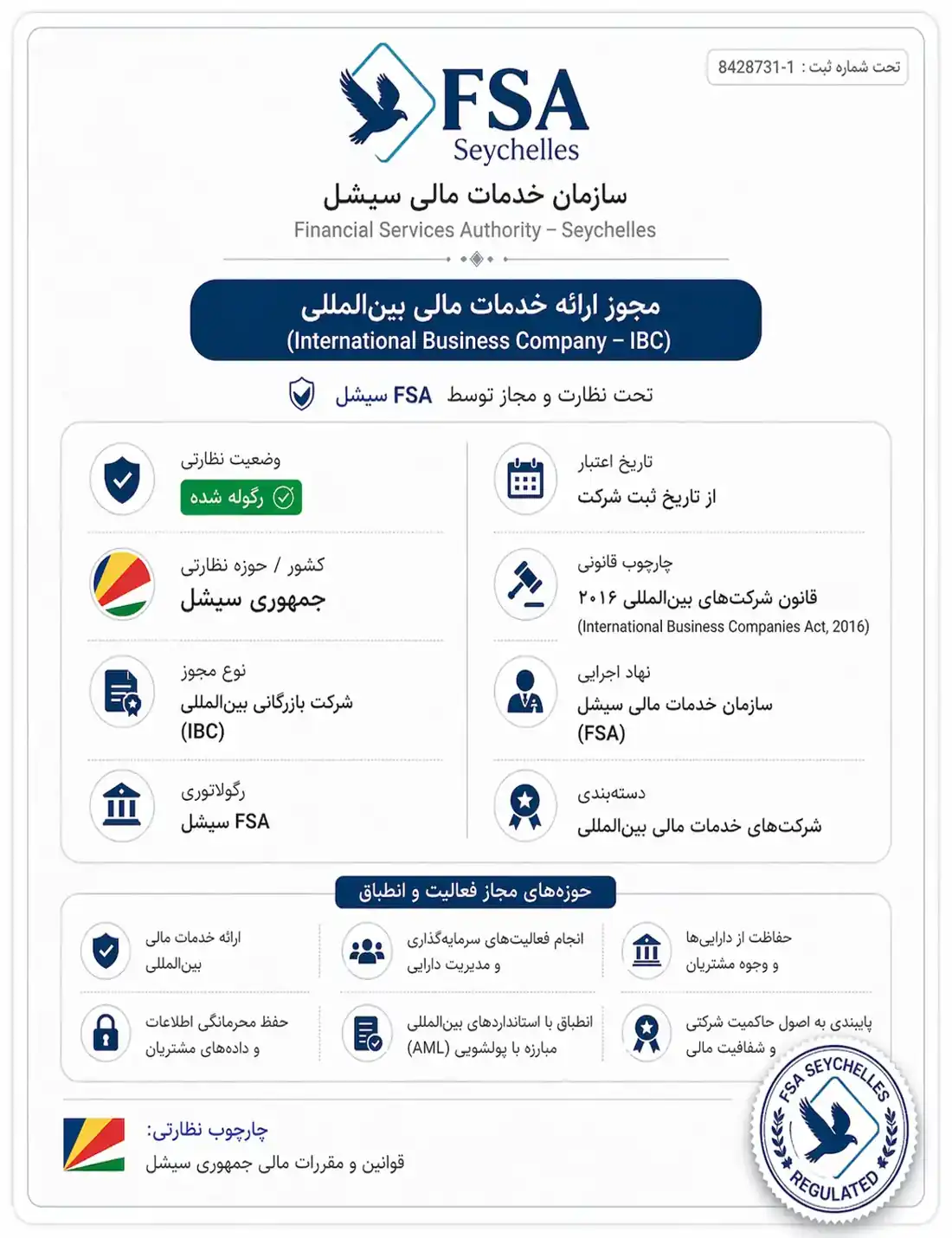 | FSA | Seychelles | Offshore Regulation | SD124 | پایین تا متوسط | |