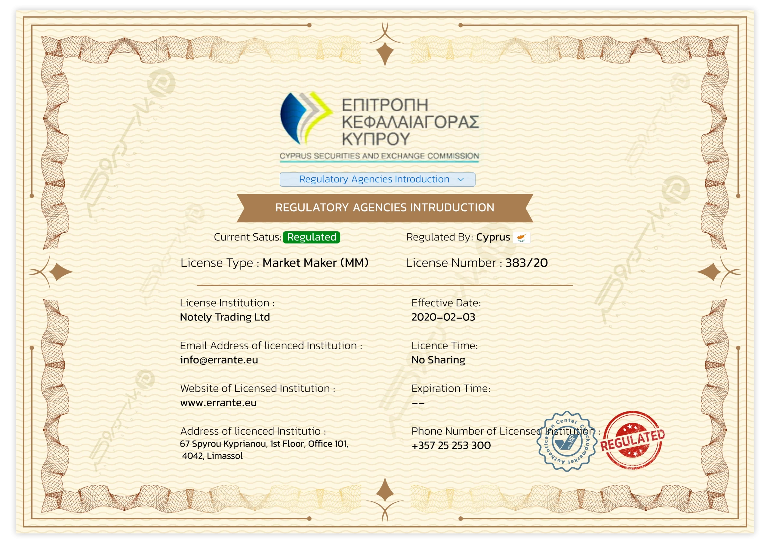 Errante Securities (Seychelles) Ltd / Notely Trading Ltd