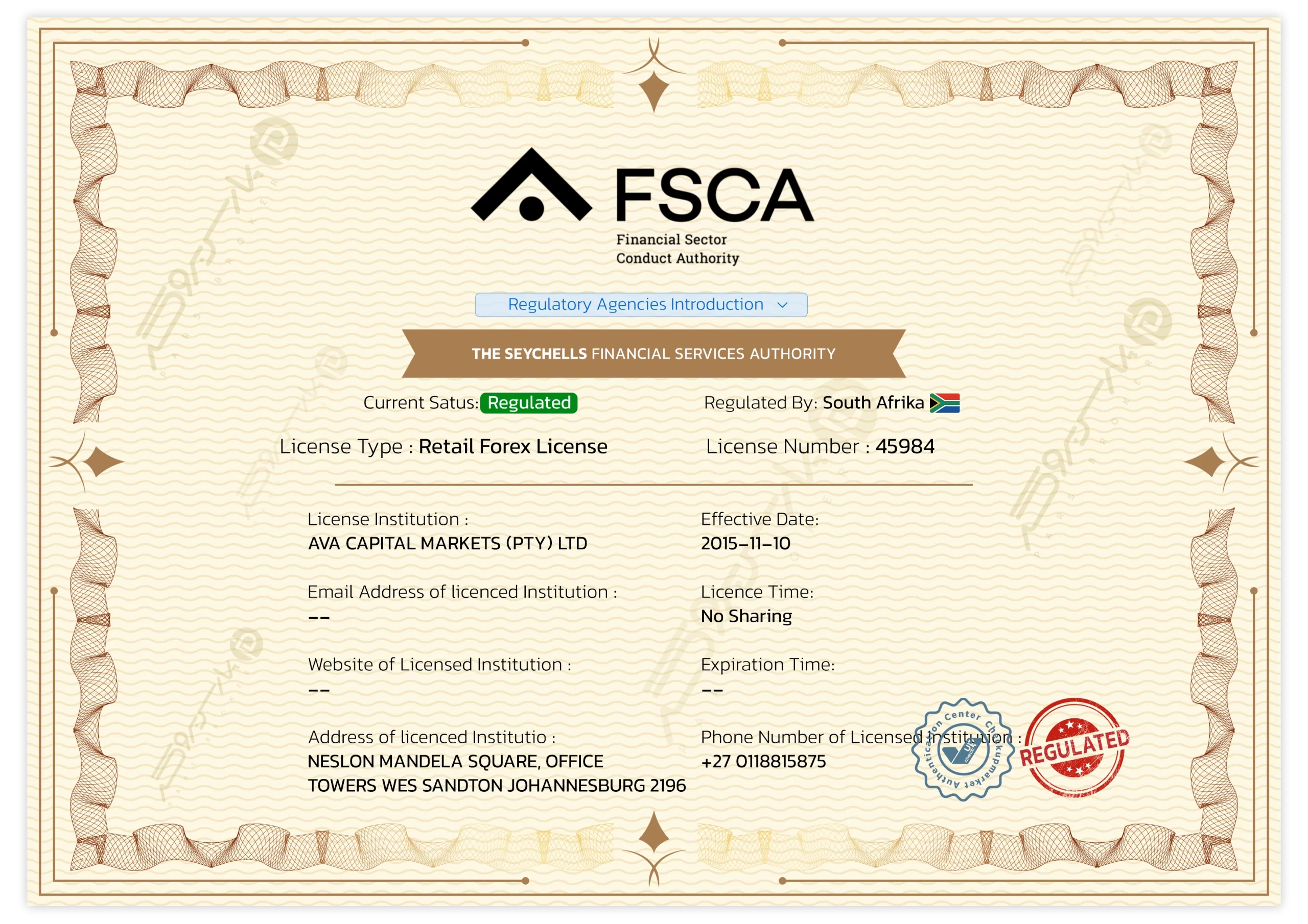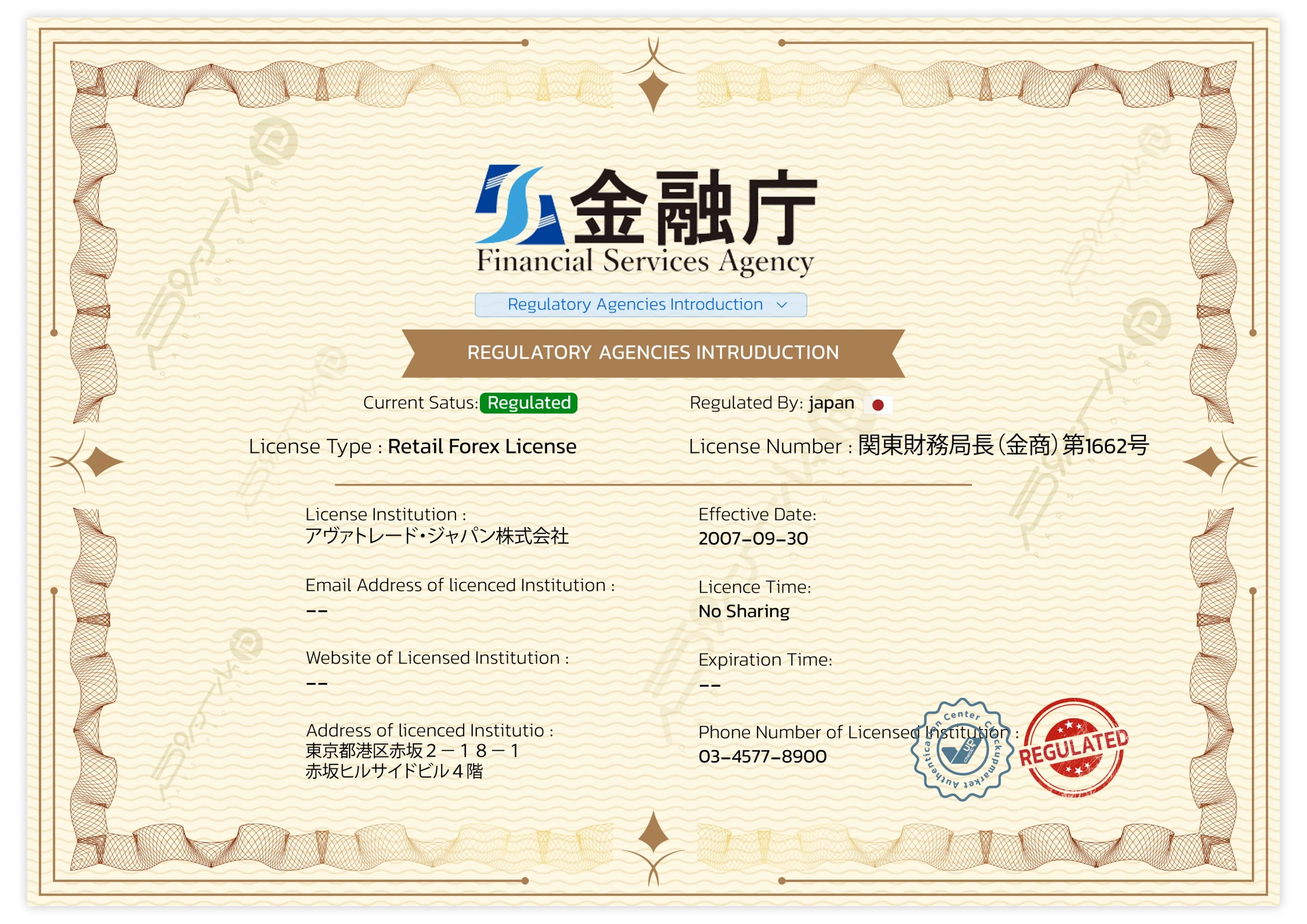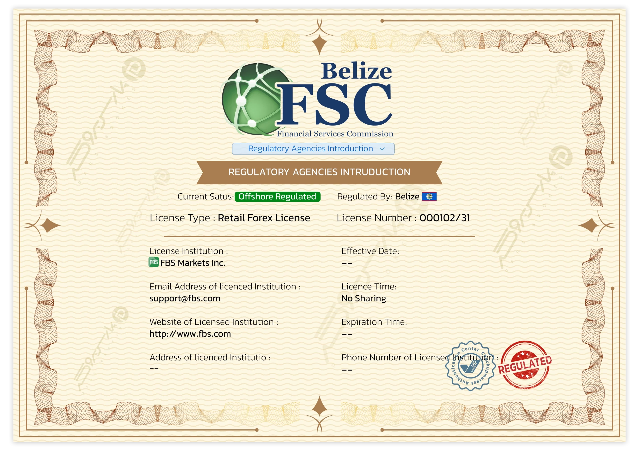 مجوزها | CBI (ایرلند) • ASIC (استرالیا) • FSCA (آفریقای جنوبی) • FSA (ژاپن) |