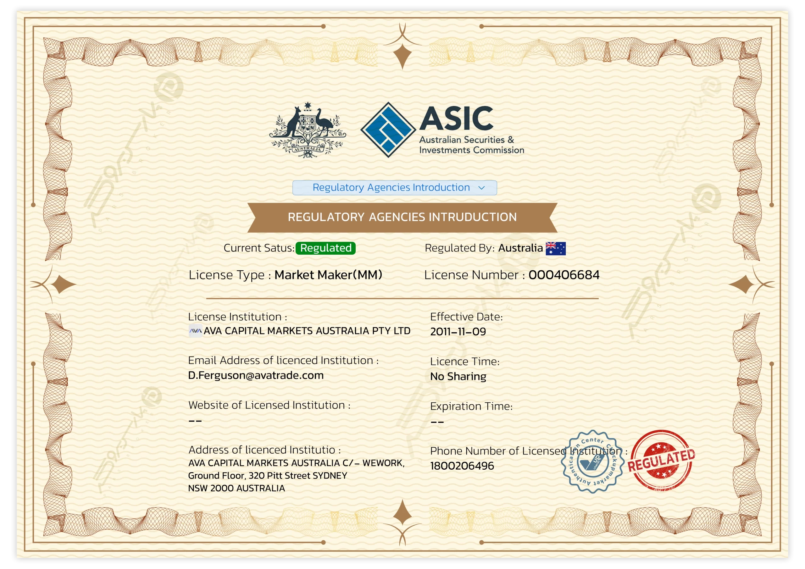 ASIC | استرالیا | Tier-1 | 406684 | قابل قبول |