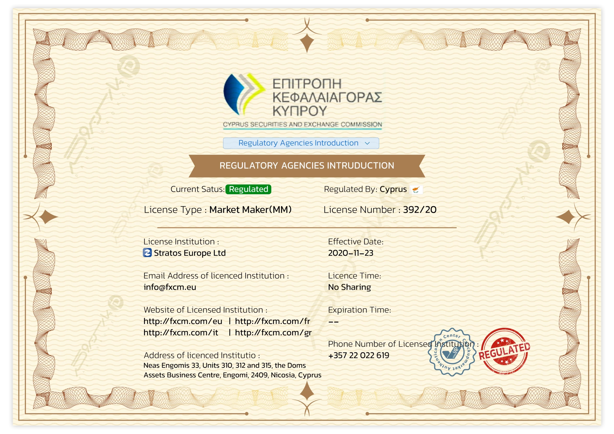 🏛️ رگولاتورهای FXCM
