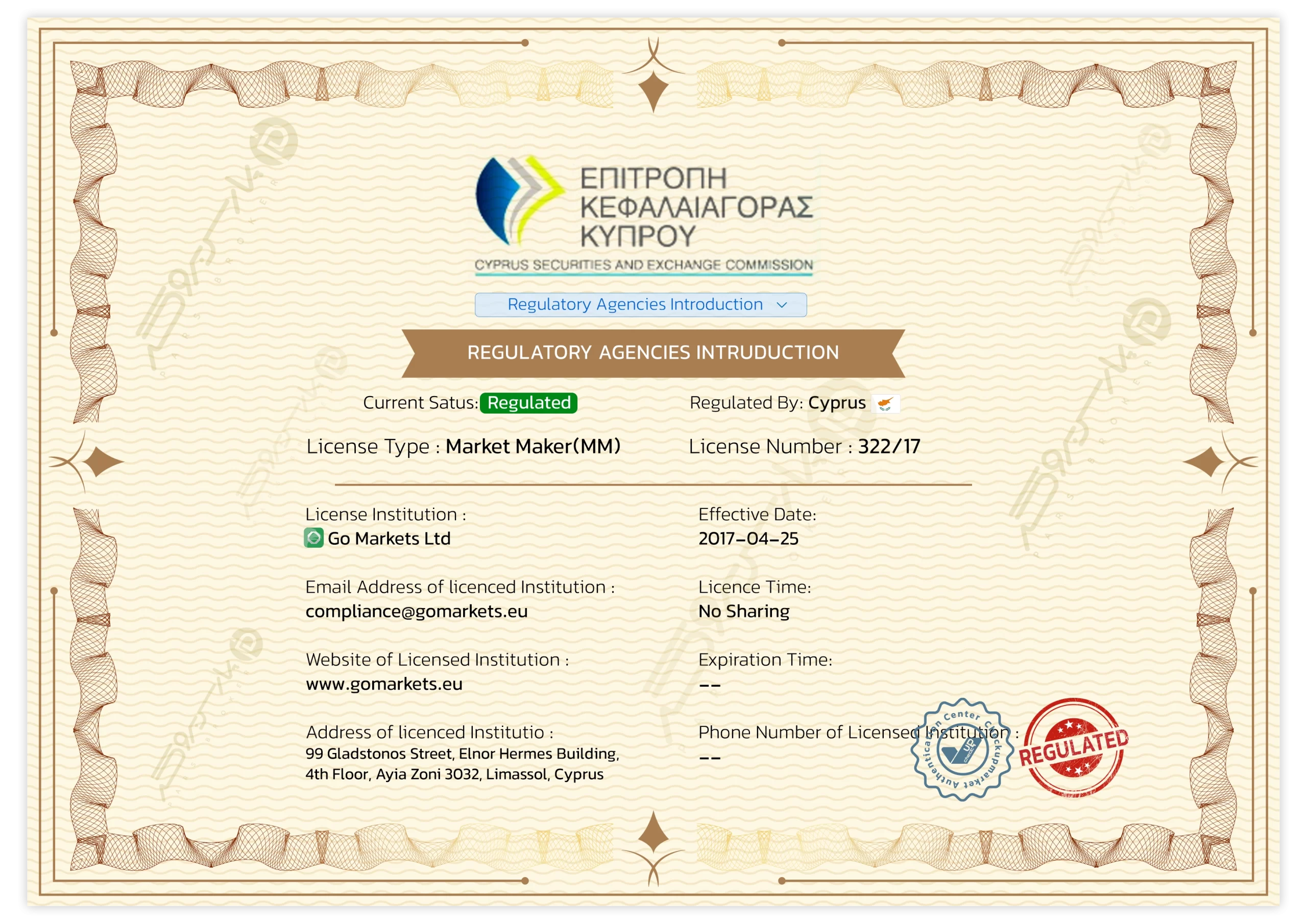 GO Markets تحت نظارت سه نهاد قانونی معتبر قرار دارد: