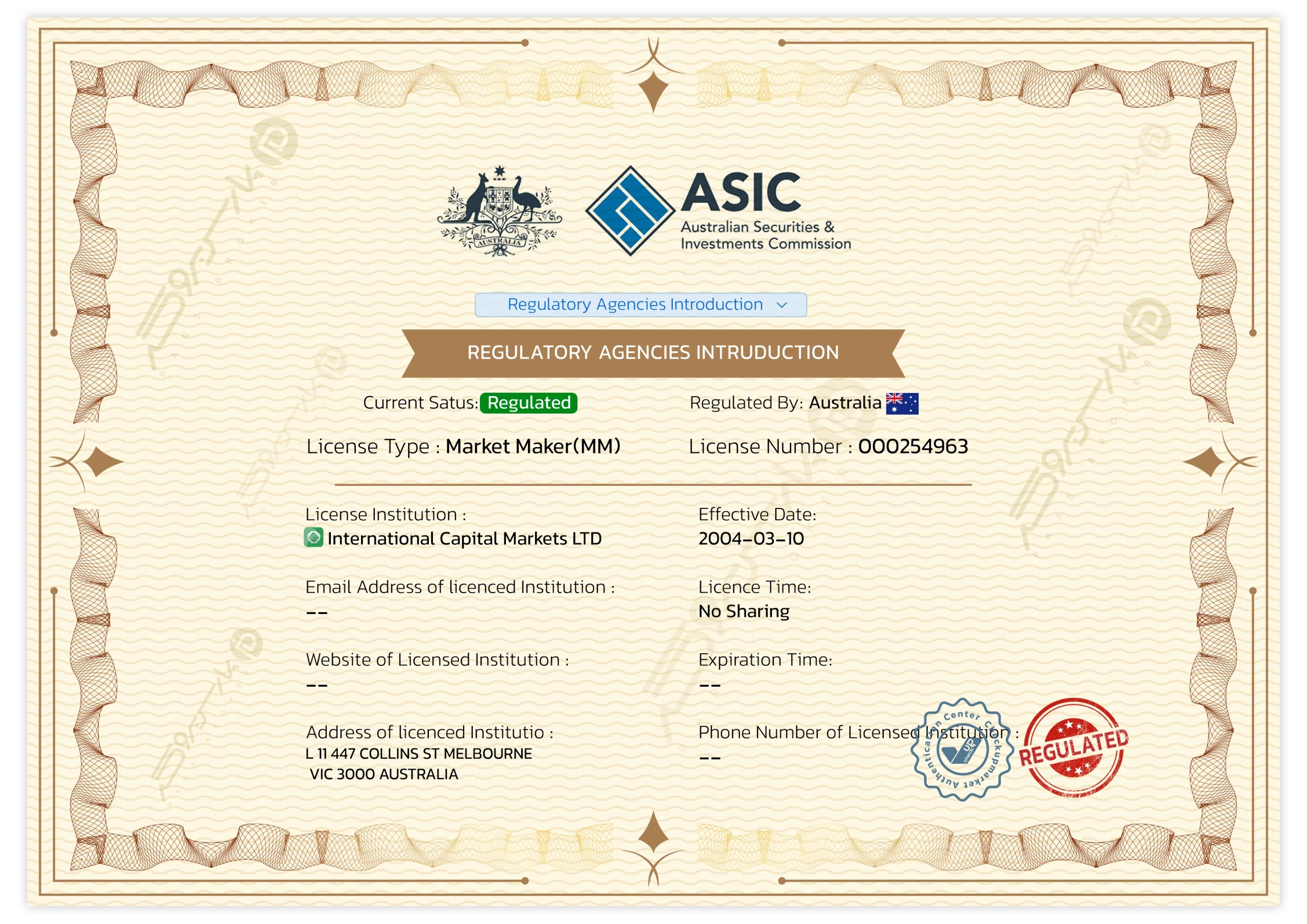مجوزها | رگولاتوریASIC (استرالیا) • CySEC (قبرس) • FSC (موریس) |